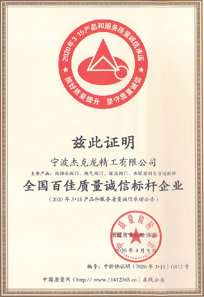 2018年11月8日,杰克龍精工公司正式獲得由浙江制造國際認證聯盟和杭州漢德質量認證服務有限公司聯合簽發的《浙江制造認證證書》,